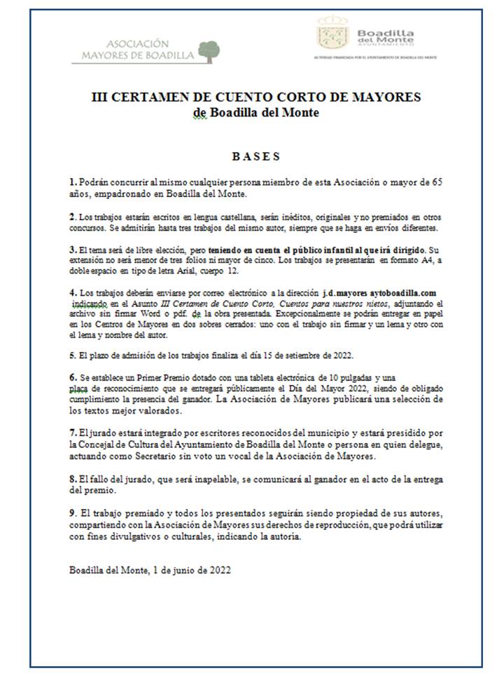 III CERTAMEN DE CUENTO CORTO DE MAYORES